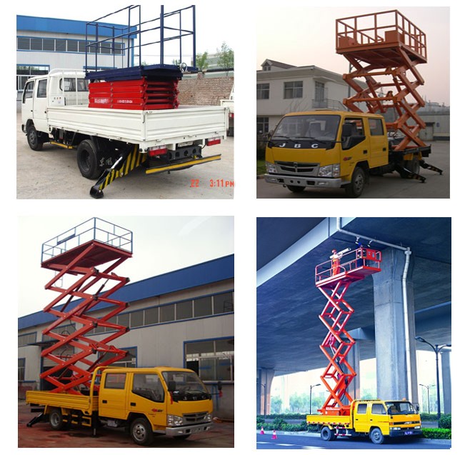 产品介绍:*车载剪叉式升降平台,采用各种车底盘加固升降平台底架,利用本车动力,在变速箱上输出驱力油泵来操作。*无需外接电源,操作灵活简单、移动方便、机动性强、工作范围大。*客户可根据要求选用解放、东风、江铃、福田、电瓶车等任意车型,设备可采用汽车、柴油机或电瓶的直接动力升降。*升降平台主体采用结构钢,单面焊,接双面成型工艺。*采用原装进口液压泵站或国内合资液压泵站。*升降平台装有平衡阀、保压等装置,升降平台可靠耐用。*护栏拆装方便,设有油管防破裂装置,紧急置停按钮,比较耐用。备注:也可根据用户使用要求(台面大小,载重,升高)设计制造。适用范围:车载剪叉式高空作业平台,广泛用于市政建设维护、路灯照明、公路设施维护、监控设施安装、工程抢修、园林修剪等行业。